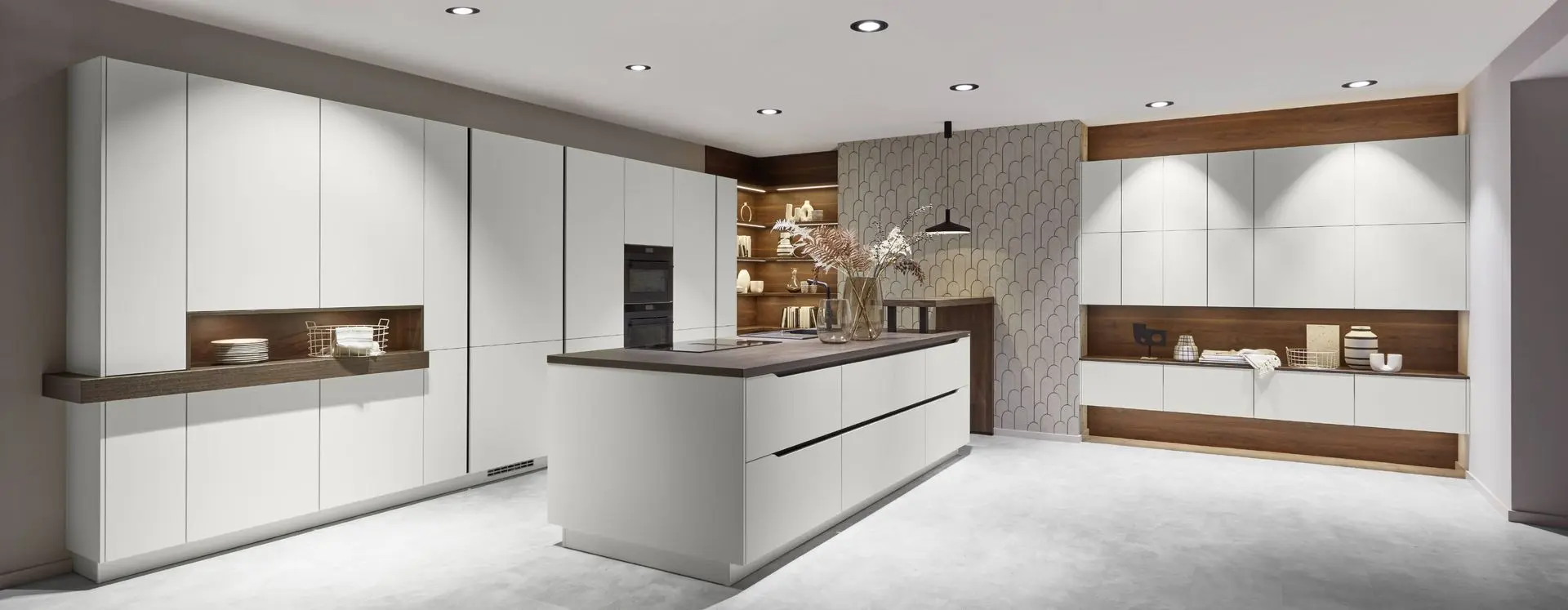 For those who appreciate minimalist design, our LINE N handleless kitchens offer a sleek, uninterrupted aesthetic. Integrated recessed handles define the horizontal lines, setting the stage for a truly modern kitchen.